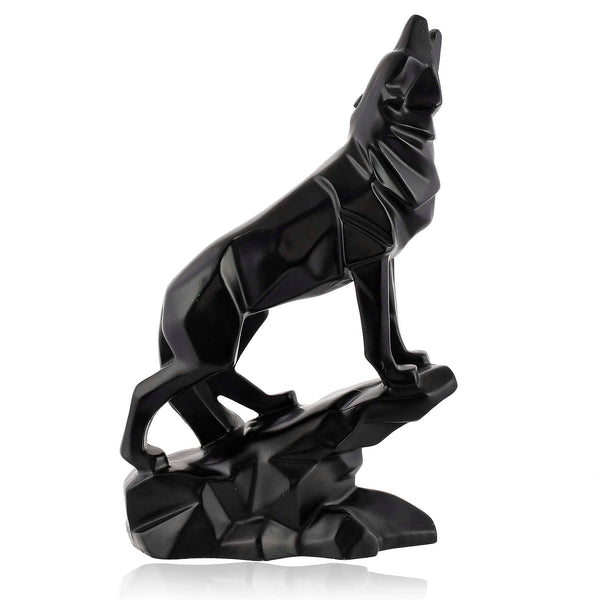 Handcrafted Black Wolf Sculpture | Diamond Cut Design Home Decor Figurine for Living Room or Office